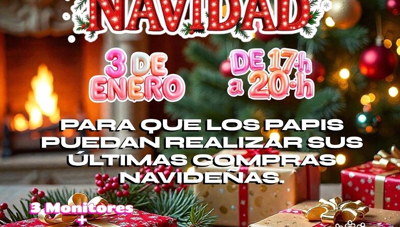 Taller de Navidad – 3 de enero, de 17:00 a 20:00 h.Exclusivo para socios.Inscripciones hasta el 28 de diciembre en 3 monitores, taller de Navidad, globoflexia y pintacaras.Precio: 5 €.